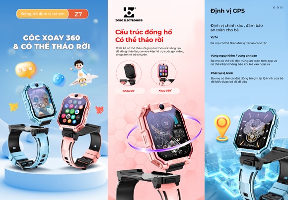 Đồng hồ thông minh Zobo Z7 4G dành cho trẻ em (6–18 tuổi) hỗ trợ định vị GPS theo thời gian thực, gọi video HD, SOS khẩn cấp, trò chơi giáo dục và nhiều tiện ích khác — tất cả trong một thiết kế bền bỉ, vui nhộn với camera xoay kép và dây đeo có thể tháo rời.